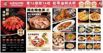 招牌油燜大蝦(小龍蝦) / 絕味毛豆 / 金牌拌麪 / 招牌蒜蓉大蝦 / 松哥海鮮第一鏟 / 麻辣蝦丸子