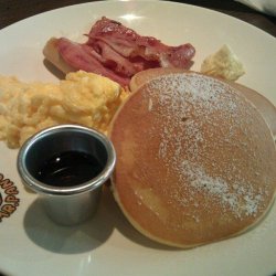 看了推荐才特地过来吃brunch的 九点多到的就已经要等位了一刚~可见人气有多旺~等位的时候看到果然有不少老外来吃额 然后大多都是一家N口带着宝宝来吃brunch的~为啥是N奈 哈哈 因为每家都至少有两个baby哦 都长得好可爱~ (眼冒星星)~然后小洋娃娃们都很安静地在等位 还指着菜单说I wanna this... 超级萌~然后店里面布置得就是那种家庭旅馆的感觉 有很多装饰 弄得像living room一样额~但是位置不太舒服 感觉有点挤~点了一份pancake套餐配牛扒 一份waffle套餐配煎蛋 都超级好吃的说~share了一下之后 发现waffle比招牌pancake更甚一筹哈~ (是因为有糖粉的原因么~)pancake配上黄油和糖浆也不错的说~蛋可以选炒蛋也可以选煎蛋 可以选单面煎 或 双面煎 哈哈~ 服务很细致~牛扒明显一般 有点老的说~ 但是对于我的无肉不欢还是ok哒~最后说一下冰淇淋 陪松饼或华夫吃也行 口感一般 估计是自制的~总结:味道soso 环境嗲 适合周末来劈劈情操 吃吃brunch 顺便和老外练练口语? 哈哈~查看更多