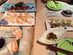 这家店看香港电影的时候总是会看到,赞助商,记得有一部电影里吴彦祖就是寿司师傅,然后徐若瑄去吃寿司,然后么,大家懂滴。第一次吃这家店是在虹口龙之梦,人暴多,扥过了很久,还只能坐到吧台,食物味道不错呢。这次和女友约在港汇吃晚饭,本来想去吃Wagas的,爱吃它家蔬菜色拉哒,不过人很多,找不到位置,就来这家了,进店的时候也蛮巧的,还有一个2人座,虽然位置真心不咋滴,总比坐寿司台要好吧。店面不大,生意很好,桌子都小小的,2人坐的话,菜还真摆不开呢,菜单也变简单了,都换单页了,然后自己勾,有团购券的,么买,消费135,也不贵。喝的免费的茶,蛮好的。鱿鱼,味道真心好的,酱汁嗲额,烤的也蛮嫩额,这个是季节性餐点的,菜单上有,点菜的那张纸上没有,需要另外写上去的。板长色拉,就是大份的蔬菜色拉,量蛮多的,菜蘸店里的特质的色拉酱,拌开还蛮好吃的,最主要里面还有大片的刺身料吧,还蛮实在的。火炙三文鱼腩寿司,2个,特价的,8元一个,不知到为啥,现在爱吃火炙的,生吃好像不怎么喜欢了,抛弃了,估计吃多胃承受不了的关系吧。寿司卷,半卷,4个,看图片觉得蛮漂亮的,就选了,实际味道也蛮赞的。反正这顿饭点的量正好,吃的也蛮满意,就是环境真心一般了点,不适合吃完还能继续聊天的地方。