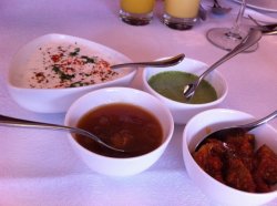 美丽的江景 可爱的服务 好吃的咖喱 joan_smile等級42012-03-064 瀏覽 關注 一进去就被这家的装潢给迷住了 以白色系为主搭配红色 小细节的印度风情 超喜欢的 特别是小排排的小灯 好漂亮 拍了很多照片而且完全江景房啊 从2楼看出去 视野非常开阔 大气!可惜最近天气不好而且外面在弄市政工程 等工程好了 就有很开阔的外面直接看江景了1楼是他们家的酒吧 夏天一定很赞的 看意思外码头将来要火啊 说说菜吧走正餐路线 用刀叉按顺序上菜换盘子的当然点菜也不需要太注意的 没那么拘束的芒果酸奶 黄色的很好喝很纯的口感黄瓜酸奶酱 口味很好 点一盘 可以搭配很多食材 可以配蔬菜色拉和面饼如果觉得咖喱不和口味或者太辣是可以放点中和的 是很百搭的配菜香草薄荷酱 绿色的我个人很喜欢 幽幽淡淡的清香 不会太冲的感觉 很异域风 完全不同中餐的感觉了印度腌泡菜 我觉得大概属于比较印度风了 我不是很吃的怪 说不清楚的口味豆泥脆饼 很好吃!是用豆子做的 很脆 但是比较咸 吃了2片就不行了 当开胃菜还不错吧下面是主菜了 一般印度的主菜 就是咖喱和烧烤为主碳烤芝士无骨鸡 很好吃 味道浓郁入味 难得芝士和碳烤搭配的好碳烤酒肉好吃的 但是老了点点碳烤鲳鱼可以的酥皮素馅咖喱角:做的很好的外皮 厚厚的但是很脆 配着软糯的土豆泥很搭哦番茄浓汤 喝吃有点类似冬阴功汤 但是没冬阴功放那么多种香料的感觉还是番茄味占主导 蛮清爽的因为我们人多 所以直接帮我们分菜的所以拍照欠缺了咖喱虾仁 咖喱鱼 菠菜蘑菇 白咖喱什锦蔬菜 果仁香米饭这几样一起上 香米饭是用藏海花的汁浸过的 所以泛黄 但是还蛮好看的几种咖喱的菜 都是不同的咖喱 我个人比较喜欢种口味这几种还算没那么重口味或辣的咖喱菠菜蘑菇 我不喜欢吃菠菜 不过这个菠菜和什么奖励烧一起很浓的酱汁味道了配蘑菇倒也可以接受上来好几种印度饼 都很好吃 完全不同口感大家都觉得果仁白面饼最好吃 果仁脆脆的口感 和面饼一起烘烤后产生了一种微甜的口感 让人觉得是种新的很特别的饼印度手工库菲冰淇淋 这个我个人觉得冰激凌很好吃 但是里面的果仁也太多了吧 喧宾夺主了印度马萨拉奶茶 是我完全不能接受的味道 因为好重的草药味啊据说这个吃完咖喱可以清口 反正我接受不能 感觉就是中药了 我最怕中药味道了因为是比较正式的西式印度菜吧 所以上菜什么的都是一步步来的 不要着急哦很多印度服务生 态度都很好 别被环境和过程吓唬了 其实性价比真心不贵人均150内可以吃很好了走的时候还看了眼一楼的酒吧 怎么说那 现代印度风 哈哈西式装修 但是融入了很多印度元素 生命树 龙鳞墙 当然还是全江景哦 不过要等市政工程结束 嘻嘻…查看更多+ 8以上食評乃用戶個人意見 , 並不代表OpenRice之觀點。讚好分享美丽的江景 可爱的服务 好吃的咖喱 极印度餐厅 https://s.openrice.com/KtbT100O1q200檢舉 張貼 評分4味道5環境4服務4衛生3抵食推介美食正正正正正正正正正正咖喱鸡咖喱鱼芒果酸奶果仁白面饼印度手工库菲冰淇淋用餐日期2012-03-03人均消費¥120 (午餐)