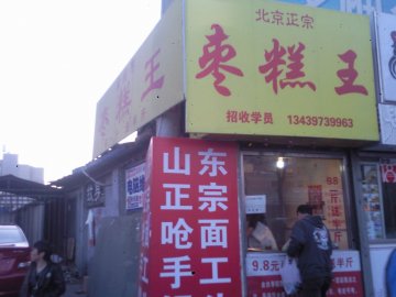 枣糕王,小小的门脸,不是很起眼。味道还不错,口感很好。价格不贵,10多元就能买不少呢。他家的枣糕都是现做的,热乎乎的,口感松软,枣香味道很足。偶尔会排队,人气挺旺的。