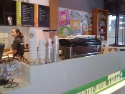 很有童趣的一家店。从桌椅板凳,店面logo,都是卡通形象。点了一杯拿铁,表面细腻的泡沫是snoopy的样子XDD味道比较适中,没有过度的偏苦,而且很香。巧克力慕斯,奶油一点也不腻,有点朗姆酒的味道。淡淡的香味很适合!绵软的口感也很棒。价格也算OK,和几个好朋友来此静静的聊聊天,喝喝下午茶,是很不错的选择查看更多