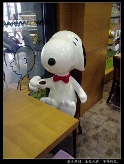 对于主题餐厅和咖啡馆控,看到snoopy主题的咖啡厅眼睛都放光了,这家应该是全国连锁的主题咖啡厅,点面比较宽敞比较规整,店内的桌椅、墙纸、天花板都有snoopy的影子,当然最重要的还是喝的和吃的。    咖啡味道一般,而且晚上连杯子都没有,直接就外卖杯装了,上面有个snoopy的头像,模样还算俊俏~不过甜点看起来还是不错滴,造型很可爱,味道也还可以咯~~    这种主题咖啡厅只求来过,只求拍过,价位确实有点高,如果没有力度比较大的活动是不会再来了吧…吧……查看更多