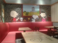 查理布朗咖啡位于江汉路GO3立体商街。查理布朗咖啡厅是让您仿佛走进了卡通世界——里面全是史努比,堆放的公仔玩具、系列漫画书、动画片、椅子上还座着大大的史努比。咖啡品种也蛮多,我点了杯冰的卡布奇诺,上面还有个史努比的图,蛮可爱。这天气喝冰咖啡最爽了。查看更多