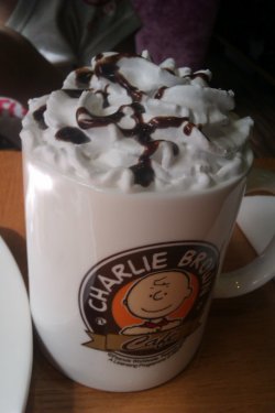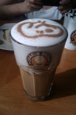 哈哈,今天很开心哦,元旦第一天,我的小弟弟就带我去了我最爱的查理布朗咖啡厅,之前看到很多人推荐说他们家的咖啡很特别,而且蛋糕也好吃,于是很早就想去试试了,但是一直没有去,今天和弟弟逛街,突然走到她家们口,决定进去歇歇,然后喝杯咖啡,查理布朗咖啡店,布置很温馨,里面都是查理的图像和史努比的图像好可爱的。我点了一杯卡布奇洛咖啡。大杯32元,很快咖啡就给我弄好了哦。服务态度很好,由于弟弟不爱喝咖啡就陪我坐了下,我四处看了下,他们家的环境真的很好,很幽静,而且还有无限上网哦,喝了一口咖啡,有点苦,倒了送给的糖包。,味道很好,上面浓浓的咖啡泡。还有个史努比的可爱图像,然我都有点不忍心喝了,淡淡的喝了一口,味道好香。好浓,真好喝,由于下午吃了好多零食就没有尝一下他们家的甜点 ,下次一定会点的哦···查看更多