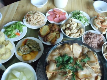 第一次知道延庆的柳沟还是从绿野网站知道的,4月4日这天跟团来到了这里,这里基本上家家都打着豆腐宴、牛肚宴的旗号。我们到的时候桌子上已经摆满了食物,因为是跟团,10人一桌,荤菜比较少,有个红烧鸡,说是土鸡,但吃着不像,不过味道还是可以的,挺香的。中间的就是豆腐,锅里有土豆粉,大白菜和豆腐。应该是我们到之前就在火上煮了,味道都进去了,豆腐是很滑嫩入味,口感很不错。牛肚是吃着的时候店家端上来的,有点老,有点硬,味道一般般。玉米很好吃,感觉比市场的要甜很多。凉菜颇多,那个水萝卜大家都很喜欢,酸酸甜甜的。如果不够吃的话,还可以在续盘,我们是自己到厨房里拿。真的是乡村自助。大家都吃的很开心。…查看更多