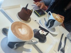 之前就心心念念的想来他们家吃东西,终于给我逮到机会了,因为他们家座位实在是太少了,只好早点来,以免等不到位子@女神,听上去就觉得很高贵,看着也的确不赖,他外面是那种可可粉,吃着就是一股浓郁的巧克力香味,里面还是有夹层的,好像是那种果酱还有些白白的奶油,其实我印象已经不深刻了,应该拍照片留念下喏。不过最后我也没吃完,实在是太撑了。。。@焦糖泡芙,本来想点闪电的,居然卖完了,那就点个其他的泡芙吧。我本来以为的泡芙都是像贝儿多爸爸那样的,没想到跟我想象的不大一样,是条状的,上面一层焦糖,结果就是爆甜。。。我吃了半个,就觉得不行了。。。导致后面女神都没吃完,还狂喝水。。。幸好水是免费的@拿铁,这个我没喝,看上去好像挺淡的,不知道哪能他们家的环境还是不错的,蛮亮堂的,而且里面还有很多小饼干什么的在卖,那天还办了张会员卡,不知道以后能有什么免费的小甜点可以领不~查看更多