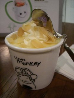 一直长草这家店的榴莲芝士~在银锭桥旁边,紧挨着云海肴,一眼就能看到,门脸看着挺小,进去后可真是别有洞天,走廊里摆放了很多瓶瓶罐罐的小玩意,柜台里摆满了各种布丁小蛋和芝士甜品,一个个看着很可耐。屋子里环境很温馨,上了小二层,刚落座的时候还没别人,选了个靠近最里面树叶的沙发桌,清新的布置和外面热闹的后海相比,一下感觉清凉不少,是个闹中取静的好地方。榴莲芝士 29米 小瓷杯,很有爱~在打发的奶油上撒了杏仁碎,里面是榴莲芝士,还插了一朵淡紫色的干花。还是第一次吃榴莲芝士,感觉很特别,看不到榴莲果肉,和芝士混合在一起,味儿挺冲,芝士也很浓,大爱这种醇厚的重乳酪,两种味道搭在一起真是妙极了!小勺子一点点在瓷罐子里挖,边玩边吃,完全没有抵抗力的,真是超级迷恋那个味道呀~~~最后发现杯子下面居然还有饼干底捏~~~吃完还可以把小瓷罐带回家好开心!就是我还没想好做什么用?养小花好么?查看更多