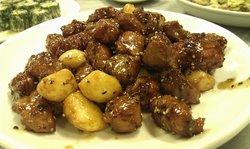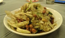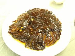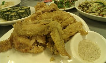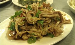听若干人都提过这家餐厅了,位于五大道上,主营津味津菜。口味因人而异,听到的也是褒贬不一的评价,于是乎跟若干年米见过的一位朋友一起来探店。地址指引:和平区成都道101-103号。去的比较早,询问服务员可以把车停在门口位置么,她一指外面,让我们停在对面广西路的空地上。好吧,那不抬眼皮的态度,大家可以脑补。挑位置时很多好座位都被预订了,选了最里面的座位。好在上菜速度还比较快,走着~芥末黄瓜墩,18米。冒冒墙裂要求要点的一道,黄瓜经过腌制,黄芥末的味道已经渗进去了,窜鼻子的芥末味道里透着甜味儿,很脆爽。不过能连续吃的亲,真心才是有勇气滴~冒吃了一大块就已经泪奔了~大拌菜,18.8米。小伙伴之前的推荐菜,但这次水准非常不稳定,糖放的实在太多了,整道菜基本上已经没法吃了。生菜、黄瓜和花生,搭配比较单一,无爱。拌肚丝,28米。又是水准失常的一道,肚丝基本米有味道,吃到嘴里的只有醋的酸味。不过本身处理的还不错,没有膻味和腥味。黑蒜子牛肉粒,59.8米。每桌的经典必点菜,一端上桌黑胡椒香气就蔓延开来。记得看过一期美食节目,评价厨师这道菜制作的好坏,首先要先品尝蒜的味道。不辣,绵软但又有一定的脆度,赞。牛肉丁很有嚼劲,没有肉筋,黑胡椒很提味,微辣的口感让牛肉的香气更加突出,很有爱。菊花茄子,32米。小伙伴点的特色菜,八过真心没觉得很惊艳。刀工不错,烧茄子的味道,大家可以自行想象一下。香酥鸡,半只38米。我会说这货刚端上来的时候就吃掉两大块么!!整鸡裹面糊炸制,切碎后装盘呈上。鸡肉炸的很酥嫩,外壳酥脆可口,鸡肉本身没太大味道,要蘸调味粉食用,建议搭配酱汁味道应该会更完美。鸡胸肉的肉质会比较柴,干干的口感不是特别喜欢,选料用鸡腿更佳。蟹黄豆花排,48.8米。出镜率不高的一道菜,但卖相却惊艳了四座啊~芙蓉虾仁碎搭配蟹黄,炒制的很软嫩,很鲜美的口感。用炸制的豆花排垫底,可以用勺子搅碎了一起拌着蛋清来吃,清新的口感,不会特别咸,好评。三人结账260米,就环境和菜品本身来说,人均略高。不过胜在特色和招牌,一试无妨。…查看更多