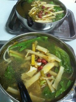 上海满大街的桂林米粉,吃过的次数已经数不胜数了,觉得味道真的都差不多,米粉的种类也都差不多,比如说酸豆角粉啊,牛腩粉啊,贡丸粉等,不过我最喜欢吃酸豆角粉,辣辣的,很好吃,汤味也不错,再加点生菜、花生米,味道就更赞了。查看更多