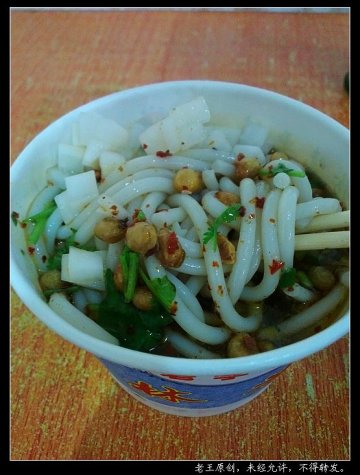 桂林米粉是桂林享有盛名的一道传统小吃,桂林米粉柔韧爽滑,汤汁鲜美芳醇,再配上特制的辣椒酱,味道真不错,但是在各地都有改良,根据当地人的口味稍加改动。 一元路16中附近的一家桂林米粉店,开了多年,偶而去吃吃,还不错,我每次都点粗的米粉(3.5元),粗的很Q有嚼劲,加一勺泡萝卜,味道更好。