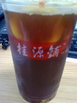 桂源铺的丝袜奶茶名气可是响当当的,好多人排队买呢,奶茶的茶味偏重挺浓郁,口感很正宗,奶味也比较醇正,加在一起口感相当好,感觉非常顺滑细腻,也不会觉得甜腻。桂源铺的柠檬红茶也很不错,瓶装的会给一个不锈钢长柄调羹,清新的柠檬,搭配上浓郁的红茶,口感相当好,好大一瓶呢,提醒醒脑很不错。查看更多