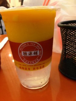 经常买这家的饮料,看到有团购就毫不犹豫的买了。店面不大。但很醒目!仅售12.8元,价值27元饮品套餐!8店通用!慢品醇厚滋味,恋上幸福心情,分享点滴感动!!团购内容是桂源铺冻柠茶(1杯,价值9元), 粒粒芒果爽(1杯,价值18元)。无需预约,到店验证后即可使用,还是蛮方便的。店员手脚还是蛮快的,虽然都是现做的,倒也没有等上很久!冻柠茶一向是我喜欢的,尤其他家做的还十分的地道,淡淡的红茶香,用管子戳几下,柠檬的香味就融合进了茶里,加上冰块,这个季节喝很是适合!如果是瓶装的那是更赞的了!粒粒芒果爽,这个第一次尝试,倒也不错。下层是果冻,上面是芒果味儿的沙冰,应该是新鲜芒果做的,味道很是不错,喜欢!这样两杯饮料团购价真心的和算啊!附近的也别错过了!查看更多