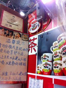 位于茂名北路靠近吴江路,小小的一个门面,不过生意蛮好的。看到他家的奶茶用玻璃瓶装的,觉得比较特别就买了冷的丝袜奶茶。不过要瓶子的话是要加钞票的= =拿到手觉得瓶子挺一般的,就单纯的玻璃瓶。奶茶味道很浓,正宗港式的味道。查看更多