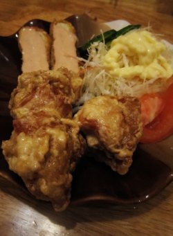 就开在哈尼公司的附近据他说是常年店铺就像不开门一样的其实里面别有洞天,那天和哈尼同事一行6人推开了她家的大门,店铺不大一进门看到左边是榻榻米的房间里面坐着不少小年轻据说这家是学生最爱光顾的餐厅之一对门的二桌是普通桌椅的估计是为不喜欢榻榻米房间的食客准备的我们6人进了间包厢,有点私密性照片拍出来有点暗,是因为吊灯的有个灯泡是坏的土豆色拉感觉象是土豆泥嘛把色拉酱拌在土豆中肉豆腐嫩豆腐搭配牛肉片里面的汤料有寿喜烧的味道味道很赞呢三文鱼中规中矩,点了2盘有点不够分搭配三文鱼的酱油还不错铁板牛肉怎么木有放在铁板上而且一半牛肉,一半蒜这个摆盘挺奇怪的肉质扎实,我就吃了一块还没细细品尝,就被瓜分了烤鳗鱼这个太甜了,鳗鱼一夹即烂没评价的那么好吃大阪煎饼号称"日本披萨"的大阪煎饼外面酥酥的,里面软软的上面铺满了木鱼花,口感非常好鸡肉奶酪卷旁边二块炸鸡就是普通的鸡肉主要在于二根奶酪卷在鸡肉条里面夹上一层cheese外面浇了千岛酱鸡翅这个绝对坑爹的鸡翅小的可以而且还烤焦了烤鱿鱼烤的有点老了味道一般觉得这家点还是比较适合情侣约会的聚会的话,有点吃不饱肚子我们吃了300,只是填饱了肚子的一角导致我们后来晚饭又去吃了第二家情侣的话,环境还不错,点个小菜,点了饭就饱了味道还是蛮好的查看更多