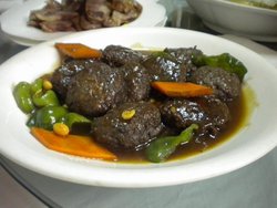 看名字以为是家私房菜馆,实际上这是一家土菜馆,装修一般,菜品摆盘比较随意,但口味却不一般。黑猪肉香肠是甜口的,超香,应该不是菜市场上普通肉猪做的吧。鸭头我一般不吃的,被老公怂恿吃了一个,好香哦,不过老公说我扔了好多,浪费了
