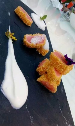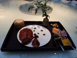 梧桐难得闹市中一家清静的餐厅,绿树萦绕,环境非常好。菜做的精美,价格也够贵。盐水鹅肝酱入口细腻,厚厚的涂在烤的面包片上,吃着咸香可口,香气非常浓郁。这里的烤鸭挺小的,不到一个月的小鸭子,没什么肉,吃的是鸭皮,脆脆的,不油不腻。查看更多
