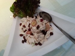 梧桐装修的非常好,让人印象深刻,环境真心的好,服务也很周到,餐厅是走高档路线的,价格小贵。新鲜的桃仁吃着很清新,拌的口味清淡,桃仁虽然没有去内皮,吃着一点涩味都没有,清脆适口,配着葡萄干吃很清甜,味道很好。查看更多