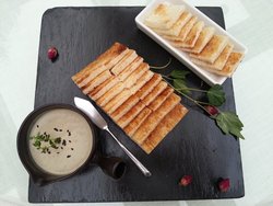 梧桐的环境非常好,如果没有下雨,在外面的梧桐树下就餐也挺不错的,梧桐树枝繁叶茂,很凉爽。盐水鸭肝配烤面包基本算是一道主食,面包是店里自己做的,切成薄片烤的外焦里嫩,盐水鸭肝细腻绵软,有淡淡的咸味,厚厚的抹在面包上吃着咸香适口,香气很浓郁。查看更多