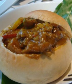 他家的环境真的不错,进去会有一种别有洞天的感觉,菜是创意菜,摆盘很好看,吃起来无功无过。所以如果是请客的话,这里是个很好的选择。芒果粒三文鱼,本意是想用果香引出三文鱼的鲜甜,不过芒果的味道太重了,反倒盖过了三文鱼。如果换成河豚的话,也许还能有一种口感上一软一硬的效果,但是用三文鱼的话,可以说,嚼在嘴里之后,三文鱼就像不存在一样了。水煮鱼做的也很有创意,一整片鱼清蒸了在沉在油里,不太麻不太辣,清香型的,鱼肉挺嫩,就是太油了。咖喱面包鸡就是用面包做盅的咖喱鸡,可惜咖喱炒的不好,不甜不咸不辣不香,没啥特点。肉汁铁板豆腐的豆腐口感嫩滑,肉汁也还可以,不过更适合配米饭。查看更多