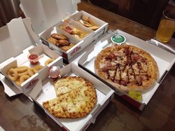 棒约翰吃过好几次了,有外卖有堂食也有自取,感觉他家披萨不搞活动时还是有点贵的,不过前一段国安比赛,硬了第二天就半价还挺给力哦。披萨里搭配的青辣椒特别好吃,一开始觉得跟野山椒似的以为特别辣,其实吃到嘴里很好吃,泡椒的感觉,还有他家的蒜味黄油酱也特好吃,沾着饼边吃根本停不下来啊!!!堂食的话环境还是不错滴,就是服务员参差不齐,有的不太上心哟。