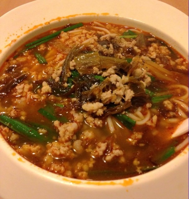 解决工作餐的好去处,一个人也完全无压力。中午十二点一刻之前到,一般有位子,就算等的话,翻桌速度也挺快的。一个人,就点了份酸辣小锅米线,上菜超快,付好钱找好位子,大约5分钟就上桌了。米线吃着QQ的,汤底酸酸辣辣的,很开胃,里面配菜有肉末、海带什么的,还有不怎么喜欢的韭菜。。中午生意非常好,等吃好出来,门口都排队等位了。