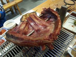 欢乐牧人蒙古炭烤羊排是连锁的餐厅,店里装修的基本都是一样的。这里的烤羊腿,烤羊排是特色,肉都是从蒙古那边空运过来的,品质很好。羊排肉很厚,烤着香气四溢,吃的时候可以先片最外面的一层,焦香可口,一层一层的烤吃着也很方便,最后还可以把羊排剁开直接啃着吃,很过瘾。查看更多