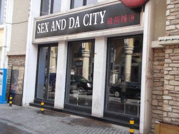 看这个店名根本不知道是吃什么的吧,而且最醒目的还是大大的英文店名SEX AND DA CITY。其实进去后发现里边环境很不错呢,里边分室内和室外,室内有表演,天气好坐室外更舒服。自制的鸡尾酒是这里的特色,味道很醇,香浓可口。在就着炸薯条等小吃,过个下午还是很舒服惬意的。炸薯条做的还不错,量给的也还挺多,金黄的颜色加上鸡尾酒的颜色,看着就很有食欲。软软香喷喷。这家店就在蓝色港湾商业区很好找。