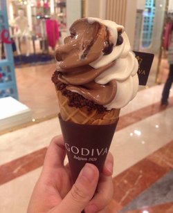 本来没想到要去吃godiva,但是后来朋友提议要去吃,自己也就不忍拒绝啦,小贵的价格还是比较让人心疼的,蛋筒中等,黑巧克力味道吃第一口的时候非常有惊艳的感觉,味道很浓,感觉那不是冰激凌而是巧克力,之后吃到巧克力酱的时候觉得有点小苦涩,过于浓郁的感觉,好在吃脆皮的时候口感一下子清淡很多,有淡淡的奶香味,这种变化过程还是蛮令人享受的。查看更多