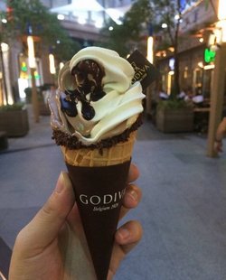 godiva号称是巧克力中的爱马仕哦,虽然我并没有吃过他们的巧克力,但是就巧克力冰激凌而言是非常满意的,巧克力口感甜中带香,吃完后并不觉得很腻,唯一的缺点就是室外吃的话化的非常快,所以还是室内吃比较好。查看更多