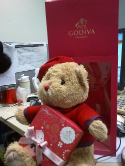 每年我家河马先生都会送我godiva的巧克力她家的产品是每年一个小熊就是可爱的小熊捧着巧克力 憨态可掬的看着你这个可爱程度不是一般人可以抵挡的小熊的脚下面还有年份巧克力一盒里面没有几片这样就要近300 400了好贵不过难得的嘛一年一次他家的hot chocolate也很好吃冲泡饮品一级棒查看更多