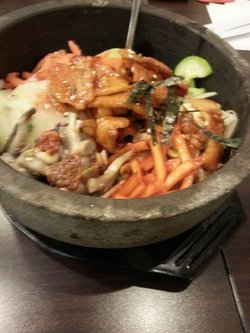 【位置】五道口华联商厦4楼。城铁五道口东边的大厦就是。【环境】中午过去的,没什么人,屋子挺大,很亮堂,桌子都是小方桌,大部分能坐2-4人。人少的时候可以随便挑着坐,很安静。环境很好。【服务】服务员态度很好,本来想单点一个辣白菜五花肉石锅拌饭,结果当天有活动,服务员推荐点辣白菜五花肉石锅拌饭套餐,一个拌饭外加一罐葡萄汁,24元,比单点更优惠,真是中国好服务员啊!【辣白菜五花肉石锅拌饭】非常好吃的石锅拌饭,五花肉虽然不多,但是辣白菜味道很正,再加上豆芽、鸡蛋等配菜,很丰富,酱料也比较多,吃起来很有味道,算是吃过的非常好吃的一家石锅拌饭了。分量很大,一个女生吃不完。【浓香丸子汤】这个很一般,只有丸子、粉条、青菜,很素。丸子里面淀粉比较多,类似于超市卖的10块钱一斤的冻鱼丸,口感一般。汤很清,并不“浓香”,而且汤很少,粉条太多了,丸子青菜吃完了,汤没喝两口也干了,就剩下粉条,感觉没什么可吃的,不值。配了碗米饭,但是不下饭,最后米饭和粉条都剩下了。【韩国葡萄汁】以前常在超市买的一种葡萄汁,特别好喝。果汁里面有整颗的去皮绿葡萄,果汁酸甜适中,超市一般卖四五块钱,店里卖的是韩国原装的,比较贵,不过好在是送的。【价格】浓香丸子汤21元,米饭2元。五花肉石锅拌饭套餐原价30多,活动价24买的,很划算。【综合】位置好,环境好,服务也好。石锅拌饭味道很正,好吃,推荐点。浓香丸子汤不推荐。…查看更多