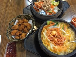 逛街累了想吃石锅拌饭的时候就会去这家, 快餐形式的韩餐, 上菜蛮快的, 拌饭用的韩国辣酱都是一次性的塑料包装, 吃起来方便卫生。当天鸡肉虾仁石锅套餐有优惠就选了它了, 没想到虾仁好迷你啊, 比想象的还要小。 鸡肉估计是鸡腿肉, 口感很嫩。 查看更多