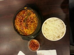 韩式简餐店,环境一般般,快餐店的感觉,一般出现了大食代这种地方。主要出产韩式餐品,大酱汤、石锅拌饭、炒米条等等。个人比较喜欢大酱汤,酱的味道很是独特,汤好烫,冷天喝起来好舒服。里面材料也还蛮丰富的,豆腐啊泡菜啊啥的,很喜欢。相比之下石锅拌饭就一般般了。查看更多