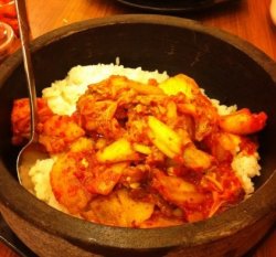 地址在西城区新街口北大街1号新华百货商场5楼美食街内,一家韩式石锅拌饭的快餐连锁店,石锅拌饭是主打。价格不便宜,相比汉拿山还是汉拿山的团购套餐划算。味道一般吧,配菜种类挺多的,拌饭酱咸度适中,米饭的质地也还不错。但是总体感觉没汉拿山的好吃。查看更多