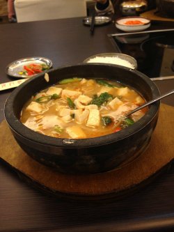 最早去他家就是石锅拌饭或者五花肉拌饭觉得还挺有特色,尤其是生鸡蛋拌开和豆芽胡萝卜肉末之类的加上韩式辣酱拌在一起,陪着石锅的高温,那种兹拉兹拉的声音伴随着拌饭冒出热腾腾的香气,曾经是俺一度的大爱啊,还有五花肉拌饭,微焦带着肉香的五花肉配辣白菜拌饭简直是人间美味有木有。有的时候还会在特别冷的时候店一份大酱汤,把白饭全泡在汤里热热乎乎一石锅,吃起来老幸福了。但是现在好像摊子铺得太大有些店的发挥偶尔失常,所以不大去了。查看更多