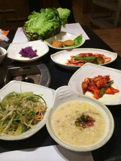 很正宗的一家韩国烧烤店,人气很高,有很多韩国人来吃。送的小菜也都不错,泡菜很开胃,绿豆芽很清爽。烤五花肉,肥肉相间,不油腻,肉质感实在,不老,很嫩很好吃。参鸡汤必点,汤非常得鲜美,喝完很多都不觉得口干,鸡肉新鲜嫩滑。炒年糕,石锅拌饭都是人气款,都推荐哦。…查看更多