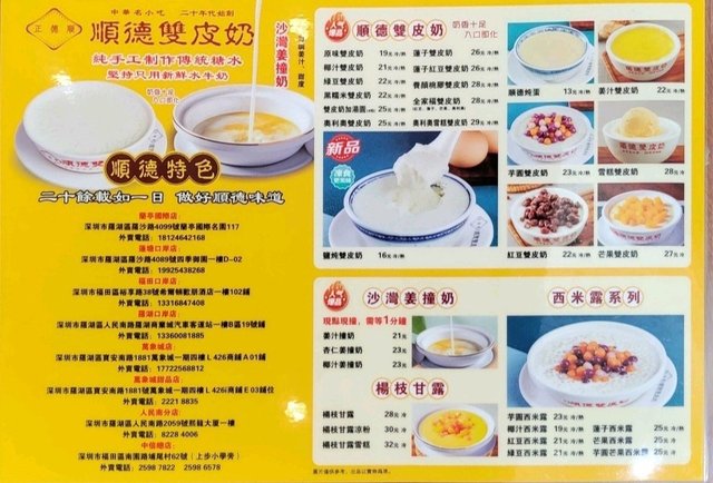 正德順順德雙皮奶 (蘭亭國際mall) (深圳) 網址: https://s.openrice.com/KtbS0W09xTU00 地址: 深圳羅湖區蓮塘羅沙路4099号蘭亭國際mall 1層117号鋪 電話: +86 13823503278