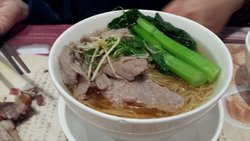 算是ifc比较平价的店了。好久不见飞利浦,他总算来上海出差一次,约我和gill吃个便饭。足足两年没有见啦 约的是这个地方。飞利浦喜欢吃,而且喜欢干净的地方。他说自己之前住上海的时候,来这次吃过几次。交通也方便,就约在这里 生意好到爆。已经1点多,还是很多人,抱歉飞利浦等了我们很久,总算他早来有个好处就是占位 茶水很普通。就像港式茶餐厅那样喧哗。有点吵,菜单上看菜品也是常规选择。点了: 牛筋牛腩面,我和gill一样的选择,本来还很想吃他们家的猪蹄面,怕油腻,还是牛筋牛腩面保险。上来牛筋满多。面条筋斗。汤头很鲜美。面条是类似伊面的那种。一碗分离很足 飞利浦叫的是小份的粥,没有share 不评论 马来风光:新加坡人必选的啊。有点辣的。和大部分加辣椒酱翻炒的空心菜味道差不多。常规味道。不难吃 黑胡椒牛仔骨,好浓郁的黑胡椒,我能说里面不仅牛肉好吃,连搭配的菌菇也很好吃么,甚至是超过了对牛肉本身的喜爱。是那种黑胡椒牛仔骨的鲜味全部融入菌菇里的那种鲜味等到2/3点的时候,还有很多客人。我们一直聊了很久,服务生一直来帮忙添茶 结帐估计300不到 飞利浦还额外带了godiva的巧克力给我们 谢谢飞利浦 查看更多