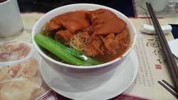 听朋友介绍说在香港也有貌似人均不便宜,因为这里一碗云吞面就要80多元,抱着试试看的心情去的,点了一碗云团面,云吞也就5个个头还不大,吃起来倒是挺有嚼劲的肉质很鲜美,汤头也非常的鲜,出彩的就是这里的面条非常的有脆度,但是性价比不高。查看更多