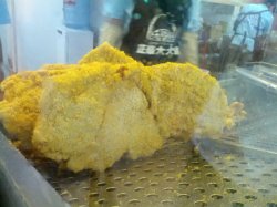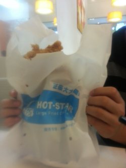 台湾过来的小吃,很风靡啊,那个鸡排比我的脸还大,真心大。。。鸡排不是很厚的那种,薄薄的,炸的蛮均匀的,外面很香脆,里面的鸡肉很嫩,其实如果说超级好吃也谈不上,就是广告效应好,因为够大,哈哈,没有吃过的可以去试试,就会要排队,生意很好。一定要找正豪大大,外面还有很多豪大大都是山寨的哈查看更多