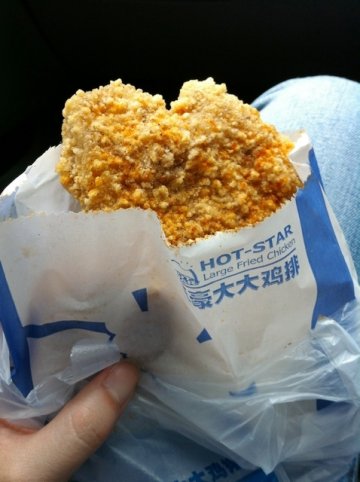 南京城里鸡排不少,好吃的不多,这家的鸡排算是不错的,至少有鸡肉可以吃,不像别家的多是面粉裹的一个薄薄的鸡脯肉。梅子粉的鸡排可以当正餐吃,分量很足。鸡排热的吃还有些汁水,冷了就不好吃了。