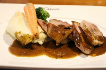 一样也是冲着实惠的团购来尝试一下的,说实话原价来可能没太大冲动,虽然开了很多年,但一直感觉不温不火的。 新食艺K11的5楼,似乎整个都是香颂的。空间很大,座位却很集中,感觉环境很一般,也没有装修的很有情调,但是挺安静的。服务员过了一会才来,但是态度很好,也比较有素养,不急不慌的,让人比较舒服。 饮品,选了一杯红茶和一杯咖啡,可以自己加奶,就是奶茶和奶咖。但是味道都一般,都比较淡…… 凯撒沙拉,看起来不多,但是挺耐吃的,沙拉酱不是特别多,比较清淡的口感。 蘑菇浓汤和南瓜浓汤,味道都还比较浓郁,分量也很多,南瓜汤略甜了。 餐前自家烘焙面包篮,面包有三四种,不过都比较硬,就当餐前零食啃了一点,长长的脆脆的棍子还不错。 蒜香芝士烤蜗牛,法餐的代表菜,虽然对于蜗牛一般都会敬而远之的,但是为了尝尝还是点了一份。上来有三小盘,每盘里面一个蜗牛,然后是满满的芝士和土豆泥。蜗牛不是特别大,肉质好像也不太嫩,反正这是我自己的口感。不过好爱吃芝士土豆泥! 蜂蜜芥末烤鸡排配香肠土豆,其实芥末味一点都不浓,鸡排肉给的很多,酱汁浇了不少,也很有味,还不错。 香煎黑胡椒鸭胸,也是法餐的特色菜,鸭胸感觉是有点熏味的,但不至于特别浓。肉质比较硬实,耐嚼。土豆泥一般,没有奶香味。 饭后的甜点吃的很过瘾,但因为实在吃太饱,连我最爱的芝士蛋糕都没有吃完……法式月桂奶油超赞,不论从味道、摆盘装饰都很棒,感觉太甜的话可以撇去上面的焦糖,下面的奶油真是浓浓的好满足!…查看更多