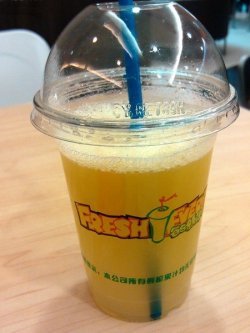 上次在某网买了每日新鲜水果吧的团购,原价18元的鲜榨果汁只要10块八,看到那么合算毫不犹豫的团了,正好逛东方商厦就顺便把团的券用了,买了杯芒果雪梨汁,柜台上放着琳琅满目的水果,看着很诱人,店员把大块大块的水果放在搅拌机里,全透明操作非常不错,现榨现吃,非常赞,芒果雪梨汁颜色是黄色的,和在嘴里甜甜的,非常爽口,好喝又健康查看更多