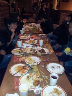 总觉得请客吃饭还是吃自助比较好,自助适合聚餐,种类多,不用担心吃不饱的问题,披萨有好几种,不用担心吃不到自己喜欢的披萨,我比较喜欢吃有火腿的披萨还有水果披萨,荤素搭配,肥而不腻。地方不大,但是满满的都是人,聚会还会选择这里