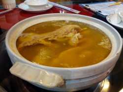 沙坪坝南街4-3号在南开中学附近的这家店,里面装修还可以,大厅里整洁干净,服务大妈很热情,上菜很快,酸萝卜老鸭汤早就炖好的,直接端出来,鸭子已炖得很耙了,服务大妈用两个汤勺把鸭子分成很多份,现喝原汤,酸萝卜的味道安逸得很,喝下去真开胃,酸辣酸辣的,再吃鸭肉味道很不错,里面的酸萝卜特别受欢迎,最后再点小菜或面块煮进去。价格小贵,又涨了点价,可按人数点大锅或中锅。…查看更多