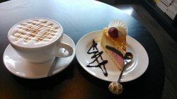 一家不起眼的小店,在附近等朋友就进去点了下午茶套餐。卡布奇诺咖啡加上一块小蛋糕,气氛还好吧,咖啡一般没有想象中那么好喝,不过下午茶随便喝喝还是可以的,看得出老板很是用心呢,咖啡弄的也蛮精致的,蛋糕有点硬 不过也还不错拉 不是很甜腻的那种 淡淡的还是蛮喜欢的