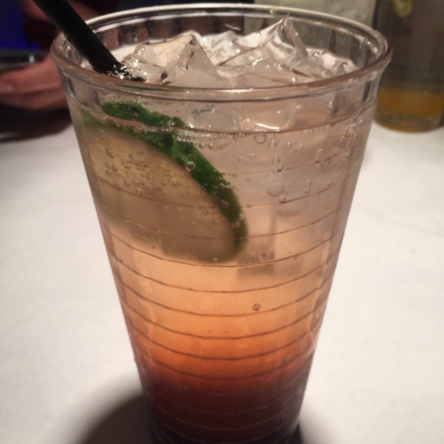 店面和菜单都满有特色的,先是冲着名字来的,肯定是海鲜食物嘛。没想到还真的满有特色的。菜也好吃。一只广口玻璃杯中插着三支串上大大的肉与肉厚色绿的灯椒片的竹签子~底面放着两颗圣女果与一点黄瓜段~卖相简单且实在!