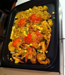 这家店就在悠塘广场,一家很不错的海鲜餐厅。环境也挺不错的,特别的大,而且布置的跟酒吧似的。点了一份咖喱皇飞蟹,一盘是98.9,2人吃的话,基本就足够了,蟹肉还不错,别看螃蟹不大,但是肉还挺足的,而且酱香味也挺浓的,螃蟹都是处理过的,吃着也方便。查看更多