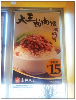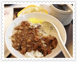 卤肉饭不错 tom0103等級32013-04-3010 瀏覽 關注 和同事在附近办完公事已经是下午两点了,可能都饿过劲了,不觉得饿了,那也得吃点安慰一下肚子。过了午饭时间,所以店里的人不多。吃什么呢? 看到墙上贴的大王卤肉饭的宣传彩页,好吧,就吃这个了。要的15元的套餐,除了一份卤肉饭外,还有一盅例汤。 卤肉味道微甜,肉香浓郁,拌着米饭吃非常的香,两片黄色的配菜又酸又脆,激发食欲,我开始觉得饿了。小菜很一般。例汤是紫菜鱼丸汤,出乎意料的好喝。 鱼丸Q弹,虽然只加了紫菜,却很是鲜美。同事要了17元的三杯鸡套餐,自从发生了H7啥的,他就总想吃鸡肉。鸡肉的味道微辣,肉也比较嫩。三杯鸡的菜量还算大,搭配那一碗白米饭正好。 菜汁里有一些碎鸡骨渣,所以同事没敢用它拌米饭,而且菜汁也比较油大。话说他家的米饭一直味道都是不错的。套餐还包括一杯豆浆,闻到豆香,但是一定没有我的鱼丸汤好喝…查看更多+ 7以上食評乃用戶個人意見 , 並不代表OpenRice之觀點。讚好分享卤肉饭不错 永和大王 https://s.openrice.com/KtbT1m0L6O500檢舉 張貼 評分4味道3環境3服務3衛生4抵食人均消費¥15 (午餐)